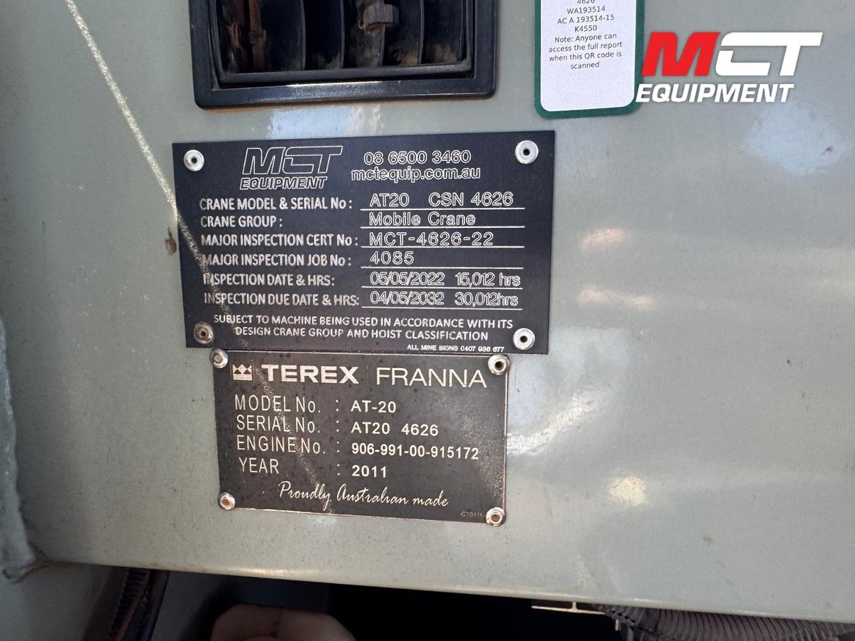 This 2011 Franna AT20-3 is a proven performer — ideal for operations needing a dependable pick-and-carry crane with strong lifting capability and straightforward operation.
